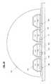 In the structure ofFIGS. 31A-E and32A-C, a first group of thirty six LEDs La1-La36 may be electrically coupled in parallel, and a second group of thirty six LEDs Lb1-Lb36 may be electrically coupled in parallel, and each LED may have a forward voltage drop in the range of about 2.5 volts to about 3.5 volts. With forward voltage drops of about 3 volts for each of the LEDs, for example, the device ofFIGS. 31A-E and32A-C may operate with a potential of six volts applied across positive and negativeelectrical contacts3101 and3103. Moreover, the parallel arrangement of LEDs provides redundancy so that operation of the device may be maintained even if one or more of the LEDs fails. Stated in other words,interconnection structure3105 may act as a common node between the two groups of LEDs so that failure of any one of the LEDs will not block current through any of the other LEDs. In addition, the seventy two LEDs in the structure ofFIGS. 31A-E and32A-C may be provided within a substantially circular area having a diameter of less than about 6 mm, and more particularly, less than about 5 mm, and still more particularly, less than about 4.5 mm.