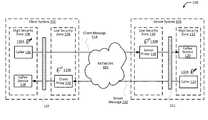 Theclient system102 and theserver system104 can each comprise various components that are located in different security zones. For instance, as illustrated inFIG. 1, theclient system102 comprises acaller component116 and acallee service component128 that are located in ahigh security zone106, as well as aclient proxy126 that is located in alow security zone108. Theserver system104 comprises acaller component124 and acallee service component120 that are located in ahigh security zone112, as well as aserver proxy118 that is located in a low security zone110.