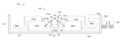 Referring toFIG. 2, thearray camera system1000 includes a first set (or ring) of cameras1114a-d(“first cameras”) and a second set (or ring) of cameras1116a-d(“second cameras) that are used together to create a virtual wide field of view camera. In this example the first cameras1114a-dincludes four cameras and the second cameras1116a-dincludes four cameras.FIG. 3 shows only two cameras from each of the first cameras1114a-dand second cameras1116a-dfor purposes of clarity. Thearray camera system1000 includes four light reflective components1124a-d(collectively referred to as “first mirrors1124a-d” for ease of reference, although in some embodiments the reflective component may be a reflective surface other than a mirror) that redirect light to the first cameras1114a-d, each one of the first mirrors1124a-dcorresponding to one of the first cameras1114a-dand redirects light to its corresponding one of the first cameras1114a-d. Further, thearray camera system1000 includes for light redirecting reflective components1126a-d(collectively referred to as “second mirrors1126a-d” for ease of reference, although in some embodiments the reflective component may be a reflective surface other than a mirror) that redirect light to the second cameras1116a-d, each one of the second mirrors1126a-dcorresponding to one of the second cameras1116a-d. For example, thefirst mirror1124acorresponds to thefirst camera1114a, and thesecond mirror1126acorresponds to thesecond camera1116a. The first mirrors1124a-dand second mirrors1126a-dreflect incoming light towards the entrance pupils of each of the corresponding first cameras1114a-dand second cameras1116a-d. For purposes of clarity, only two of the mirrors from each set of first and second cameras are shown inFIG. 3. The light received by the first cameras1114a-dand the second cameras1116a-dcan generate a plurality of images covering a wide field of view scene, and the plurality of images can be used to form a single “mosaicked” image. Although described in terms of mirrors, the light redirecting reflective mirror components may reflect, refract, or redirect light in any manner that causes the cameras to receive the incoming light. In the implementation shown, first mirrors1124a-dand second mirrors1126a-dform a centrallight reflecting structure1160.