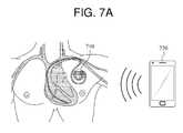 In the example inFIG. 7A, a wireless power transmitter and a wireless power receiver are mounted in themobile terminal720, and a wireless power receiver is mounted in theelectronic device710 implanted in the human body. Theelectronic device710 is charged by receiving power from themobile terminal720.