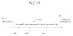 In some embodiments, theinvitational content server250 can store the user account identifier and the at least one anonymous identifier in separate logs, databases, storage devices, servers, and/or files. For example, theinvitational content server250 can store the user account identifier in a user account log or profile, and the anonymous identifier in a separate content log or profile. Theinvitational content server250 can also maintain other information in each of the locations where the user account identifier and the anonymous identifier are stored. For example, in the previous example where the user account identifier is stored in a user log, the user log can contain user information and data, such as demographics data, purchase history data, location data, personal data, activity data, preferences, and so forth. Similarly, in the same example where the anonymous identifier is stored in a content log, the content log can contain content and/or user information, such as content interactions or activity, content consumed by the user, content preferences, demographics data, and so forth. In some embodiments, to protect the privacy of the user, however, the user account identifier and any information which can personally and specifically identify the user associated with the user account identifier are kept separate from the content log and thus may not be contained in the content log or otherwise referenced in the content log.