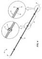 FIGS. 9 and 10 each show a steering method embodiment in which thedistal portion24 of theelongate body22 may be deflected in a single direction, andFIGS. 11 and 12 each show a steering method embodiment in which thedistal portion24 of theelongate body22 may be deflected in two directions. Thepull wire40 may be attached to, such as welded or bonded to, a surface of theshim72 so that a pull force exerted on thepull wire40 may cause theshim72, and therefore thedistal portion24 of theelongate body22, to deflect toward the side of the shim to which thepull wire40 is attached. Thus, theelongate body22 may be deflectable in a single direction. Theshim72 may have an at least substantially continuous width, as shown inFIGS. 8A and 8B, or it may be tapered as shown inFIGS. 9 and 11, with the distal end being wide enough to be screwed into the threadedelement70. The narrower diameter of the proximal portion of theshim72 may enhance flexibility of theshim72.