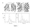 DESCRIPTION OF THE FIGURESFIG. 1. Computational Design Methodology and Experimental Validation, a, Overview of the computational design procedure. First, the geometric positions of a set of pre-chosen interaction side chains are defined with respect to the ligand (left panel), and rotamers for each interaction side chain are enumerated (left panel, inset). Second, a set of scaffolds is searched for backbones that can accommodate all of the desired interactions. For cases in which all chosen interaction residues can be placed in the scaffold protein and orient the ligand in the native binding cavity with no backbone clashes, the binding site sequence is optimized for binding affinity (center panel). Designs having native-like properties, such as high shape complementarity and binding site pre-organization, are chosen for experimental characterization (right panel). b, Ranking of the 17 experimentally characterized DIG designs by ligand interaction energy (Rosetta energy units, Reu) and the average (geometric mean) Boltzmann weight of the conformations of the side chains that hydrogen bond to the ligand. DIG10, depicted in red, scores the best by both metrics. c, Flow cytometric analysis of yeast cells expressing computationally designed proteins as part of a surface-targeted fusion protein with a C-terminal c-Myc tag. Yeast surface expression and DIG binding were confirmed by labeling the cells with a fluorescein (FITC)-conjugated anti-c-Myc antibody and a pre-incubated mixture of 2.7 μM biotinylated DIG-functionalized BSA (˜10 DIG/BSA) and phycoerythrin (PE)-conjugated streptavidin, respectively. Cell populations shown are a negative control for binding (ZZ(−)), an anti-DIG antibody serving as a positive control for binding (ZZ(+)), DIG10, DIG10 in the presence of excess (730 μM) unlabeled DIG competitor, and scaffold 1z1s. DIG10 labeled with 2.7 μM biotinylated DIG-functionalized RNase (˜6 DIG/RNase) is also shown. d, On-yeast substitutions of DIG10 designed hydrogen-bonding residues Tyr34, Tyr101, and Tyr115 to Phe and binding cavity residue Val117 to Arg reduces expressing-population compensated mean binding (PE) signals to background nonbinding (ZZ(−)) levels.