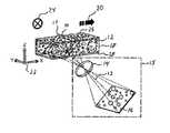 Theangle theta35 is defined as the angle between the firstoptical axis13 and the scanning axis X as defined by the coordinatesystem22. In one embodiment, the angle theta is in the range 5 to 85 degrees.