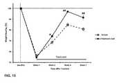 FIG. 13 depicts the change in BML lesion size compared to placebo at six months with zoledronic acid treatment in patients with osteoarthritis of the knee, bone marrow lesions, and different degrees of joint space narrowing.