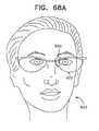 When applied to the skin the VELCRO Patch works as one piece with durable and disposable parts connected by the hook and loop material and no hardware is visible on the surface of the durable part with the exception of a reporting device such as a LED to alert the user when the biological parameters are out of range. AccordinglyFIG. 77C is a schematic view showing the VELCRO Patch ofFIG. 77B, with saidVELCRO Patch1724 applied to the skin around theeyes1726 and with an external surface ofdurable part1722 containingLED1720 which is activated by processor and driver module (not shown) housed in thedurable part1722 ofVELCRO Patch1724.