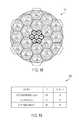 HAP Coverage Area Fourth EmbodimentIn a fourth embodiment, acoverage area2200 includes an outer ring of 12 cells, an inner ring of 6 cells, and a center cell. In this embodiment, the inner ring of 6 cells from the first embodiment described in conjunction withFIGS. 7 to 11 may be divided or sectored each into multiple cells, as shown inFIG. 22. In the example shown, each cell in the outer ring is sectored into 3 separate cells. The beam necessary to illuminate each sector would be nearly circular with a beamwidth of 8.8° by 9.3° . The dimensions of the antenna aperture would be elliptical at 3.11 by 2.95 inches and would have a gain of 25.8 dB. This represents an improvement of about 5 dB over the design with non-sectored cells and all three beams can be produced by a single fixed phased array.