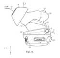FIG. 4 is another perspective view of theheadphone10 ofFIGS. 2 and 3, and an illustration of forces applied to theheadphone10 when theheadphone10 is positioned at an ear, in accordance with some examples.FIG. 5 is a bottom view of theheadphone10 ofFIGS. 2-4, and an illustration of forces applied to theheadphone10 when theheadphone10 is positioned at the ear, in accordance with some examples.FIG. 6 is a view of the headphone ofFIGS. 2-5 positioned in a human ear, in accordance with some examples.