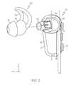 In addition, the retainingloop32 rotates in a direction D2 along the antihelix of the ear to seatouter leg37 of the retainingloop32 beneath the antihelix, which can contribute to thedistal end31 entering the ear canal. Also, thetip body34 moves in a direction D3, whereby a torque is applied, which places at least a portion of thetip body34 and/orouter leg37 in the locking position under the antitragus of the ear. Theinner leg38 of theloop32 can apply a force at the top of the antihelix, so that theloop32 locks under the antihelix. Theloop32 is flexible and can move in and out of plane and curl up to fit multiple ear internal sizes.