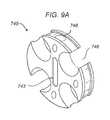 FIG. 9A illustrates a perspective view of anexample support member740. InFIG. 9A, 700-series number refer to like components already described above for 100-series numbers, and therefore description may not be repeated forFIG. 9A.Support members740 may be configured to receiveelongate spine120 throughpassage743.Passage743 may be central in thesupport members740. Eachsupport member740 includes a plurality ofreceptacles746 configured to receive wires, cables, hoses or othersimilar conduits10 such that a downward-acting force onconduits10 is transferred through thesupport members740 to theelongate spine120.Receptacles746 open toward an exterior.Support members740 include a transverse through-bore748 configured to receive a pin160 (FIG. 5).