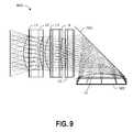 FIG. 9 illustrates a ray trace of light as it passes through an embodiment of a lens assembly for a folded optic image sensor.