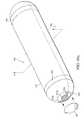 Based on a nominal outside sheet radius of 6.5 mm and an inside sheet radius of 5.75 mm (0.75 mm thickness of the composite strontium titanate/Microlam dielectric), and dielectric constant of 300, the capacitance obtained per unit length is roughly 0.136 E-06 Farad/meter. For a 25 mm long center section as in the exemplary embodiment, the capacitance is therefore roughly 3.4 nF or 0.0034 μF. The dielectric strength of Microlam is given to be greater than 700 V/mil, where one mil=0.0254 mm. Hence, for a 0.5 mm (6.5 mm−5.75 mm−0.25 mm strontium titanate) thick Microlam insulator sheet, the withstand voltage is on the order of 700 V/mil×11.0254 mil/mm×0. 5 mm=13.780 V. Hence, a voltage of about 13,700 V can be readily sustained by the aforementioned insulator sheet without dielectric breakdown. The capacitor (specifically, the housing charging terminals) is placed across a charger (not shown) which generates this voltage prior to administration of the device in vivo, thereby charging the capacitor, at which point the probe may be removed from the charger. Theprobe charging terminals2799 in the illustrated embodiment are disposed internal to the probe such that the probe must be disassembled in order to charge the housing capacitor, hence, an inherent patient safety feature is present, since the probe housing structural capacitor can not “short” and discharge across the subject's intestine or other tissue while in vivo, since (i) it is covered with a dielectric coating, and (ii) the terminals are contained entirely within the interior volume of the probe. It will be recognized, however, that other safety measures may be employed consistent with the invention.