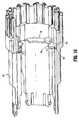 With reference toFIGS. 2 and 3,staple cartridge140 includes a substantially cylindrical member configured to operably engage adistal end122bof outercylindrical portion122 ofhousing120 and defines alongitudinal opening141 configured to receiveknife assembly150 therethrough.Staple cartridge140 includes a plurality ofstaple receiving pockets142 disposed about opening141 arranged in two concentric rows.Staple receiving pockets142 align withpusher members136aformed ondistal portion136 ofpusher130. As discussed above,staple cartridge140 also includes a plurality of mountingtabs144 and aprotrusion146. Mountingtabs144 operably engagerecesses125 formed ondistal end122bof outercylindrical portion122 ofhousing120 whileprotrusion146 assures the proper alignment ofstaple cartridge140 withhousing120.