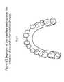 A well known aligner is made of a reasonably transparent medical grade customized plastic that fits onto a patient's teeth (hereafter flexible aligner). The desired alignment is achieved by configuring the aligner to induce the misaligned tooth/teeth to move and realign with the aid of the aligner. To treat a patient, several braces may be devised to induce the movement of the misaligned teeth gradually over a period of time.FIG. 1ashows aflexible aligner100 configuration used in conventional orthodontic procedures and used in a method according to the present invention. Aflexible aligner100 which is acurved body102 having arecess104 that receives a patient's teeth. The curved body is flexible as illustrated inFIG. 1b. A flexible aligner is sometimes referred to as a removable aligner because it can be removed from the teeth and snapped back on by the patient.