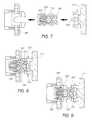 Theaccess door407 also carries adetent element723 that mates with aresilient clamp725 carried on theshuttle element710 offlow valve705. Specifically, these mating elements effect sliding movement of theshuttle element710 from initially protruding position (i.e.,tubing703 pinched) toward fully open position (i.e.,tubing703 not pinched) as the access door is closed, as illustrated inFIG. 8. Additionally, the engageddetent element723 andresilient clamp725 remain engaged as theaccess door407 is initially opened, thereby to pull theshuttle element710 toward maximum protrusion from thehousing707 to pinchtubing703 and inhibit further liquid flow therethrough, as illustrated inFIG. 9. The attachment of theresilient clamp725 carried on theshuttle element710 offlow valve705, and thedetent element723 carried on theaccess door407 is overridden and resiliently released following maximum protrusion of theshuttle element710 and further opening of theaccess door407. Of course,detent element723 may be carried on theshuttle element710, and aresilient clamp725 may be carried on theaccess door407 to effect similar interaction and safety operation.