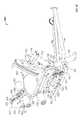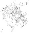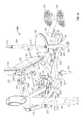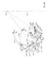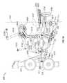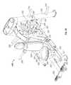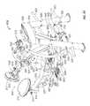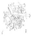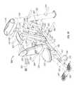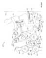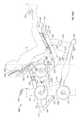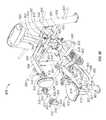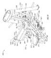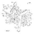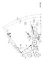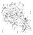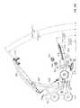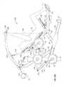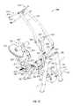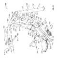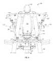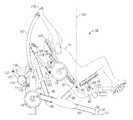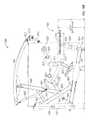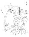 The lifting arm is also linked to the user engagement device. The user engagement device in this embodiment comprises thehandles480 and flexible cable or otherelongate member485 which has opposite ends secured to the respective handles480.Cable485 extends in a path around a series of pulleys on themain frame upright492 and around apulley522 mounted in aswivel housing524 which is pivoted to an upper side of thelifting arm476 for rotation aboutpivot axis525, thereby linking the user engagement device to the lifting arm. As illustrated inFIGS. 50 to 54,cable485 extends from one handle betweenpulleys526A (FIG. 54) of one set of a pair ofswivel pulley assemblies528 mounted onupright492 via pivot sleeve or swivel housing529 (FIG. 50), around one of a pair of fixed, side-by-side pulleys530 on the upright above theswivel pulley assemblies528, then around one of a pair ofparallel pulleys532 on opposite sides ofupright492, and then downwardly around thepulley522. From thepulley522,cable485 extends back up around the second one of thepulleys532, around the second one of thepulleys530, and is then received between the two pulleys526B (FIG. 54) in the second set of theswivel pulley assemblies528, before connecting to thesecond handle480.