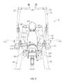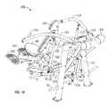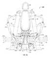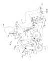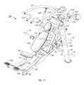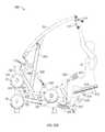 This arrangement effectively provides a multiple pivot connection or four bar pivot linkage between the user support and the main frame. The four bar or multiple pivot linkage has a first, floating link at its rear end comprisingpivot link plates828 and a second link provided by the liftingarm788 which is pivotally connected between the main frame atpivot axis844 and the user support atpivot axis824.Pivot link plates828 provide a floating pivot link similar to the link described in connection with the first embodiment of co-pending U.S. patent application Ser. No. 11/846,459 of Webber et al. filed on Aug. 28, 2007, the contents of which are incorporated herein by reference.