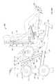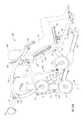 In this embodiment, as in the previous embodiment, the user support is pivotally mounted on the main frame via a multiple pivot linkage comprising the lifting arm pivoted to the rear end of theupper tube580 and the pivotedlink579 between the base section of the main frame and the base portion of the user support.