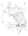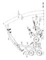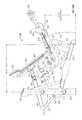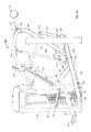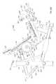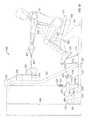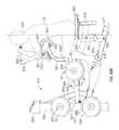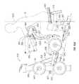 FIG. 38 is a side elevation view of the machine in the position ofFIG. 36, with part of the support frame removed to reveal the lifting arm;