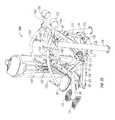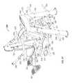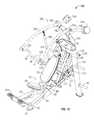 As best illustrated inFIGS. 43A and 43B, forward connecting link335 spaced in front offrame upright332 is pivotally connected at a lower end to the user support frame viabracket372 for rotation aboutpivot axis374, and at the opposite end to thepivot brackets330 for rotation aboutpivot axis375. The second orrear connecting link376 is spaced rearward fromframe upright332 and has apivot sleeve378 at its lower end pivotally mounted betweenbrackets379 on thelifting arm336 for rotation aboutpivot axis380, and a pivot sleeve382 at its upper end pivotally mounted between the rear ends ofpivot brackets330 for rotation aboutpivot axis384, as best illustrated inFIGS. 41, 43A and 43B.