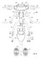FIG. 54 is a top plan view of the user engaging handles and part of the flexible line attached to the handles in the machine ofFIGS. 50 to 53, with a seated user engaging the handles, illustrating user defined movement of the handles to perform different upper back exercises;