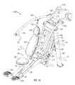 Main frame971 has an upwardlyinclined base strut976 with a short,ground engaging post977 at its forward end, and an upright A-frame section secured at the rear end of base strut comprising a pair of inwardlyinclined uprights898 connected by anupper cross member899 and across bar900 spaced between the upper and lower ends ofuprights898. As in the previous embodiment, weight storage pegs902 are provided on the A-frame uprights. Rearwardly inclinedupright strut904 extends from an intermediate location onbase strut976 to the A-frameupper cross member899.