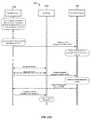 FIG. 15D is message flow diagram of an example scenario in which a portable device or a network server selects a geographic location for use in projecting navigation directions from a portable device based on activity of another portable device; and