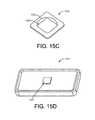 FIG. 15A shows a top perspective view of a mounting cleat attached to a mount assembly embodiment.FIG. 15B shows the mounting cleat and mount assembly ofFIG. 15B, with the mounting cleat disengaged from the mount assembly.FIG. 15C shows a bottom perspective view of the mounting cleat.FIG. 15D shows an encasement for a mobile electronic device, the encasement having a mounting cleat attached to an outer surface.