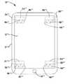 Referring toFIG. 10, in another embodiment of theelectronic device20′″″ there may be a plurality of audio output transducer and serpentine tuning port pairs, and more specifically, for quadraphonic operation, four pairs of audio output transducer and serpentine tuning port pairs31a′″″-31d′″″,40a′″″-40d′″″ carried by thehousing21′″″. Each of the four pairs of audio output transducers andpassive radiators31a′″″-31d′″″,40a′″″-40d′″″ has a respective baffle enclosure and is similar to the audio output transducer and serpentine tuning port described above with respect toFIGS. 4, 5a, and5b. In particular, eachaudio output transducer31a′″″-31d′″″ is acoustically coupled to a respectiveaudio output port32a′″″-32d′″″, and eachserpentine tuning port40a′″″-40d′″″ is coupled between the paired audio output transducer and thedisplay23′″″ and acoustically isolated from the respective audio output port. Thecontroller22′″″ may selectively operate the plurality ofaudio output transducers31a′″″-31d′″″ to provide quadraphonic sound, and may also provide localized or directed haptic feedback through the areas of thedisplay23′″″ adjacent thepassive radiators40a′″″,40d′″″, for example, the four corners of the display.