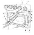 The relationship between the various panel structures is seen best inFIG. 6. There, thebezel body46 abuts therange body panel14 and includes the threadedcylinders58 projecting through openings in therange body panel14 toward the interior of therange10. Thebracket60 includes an opening through which a threadedcylinder58 projects. Inward of the threadedcylinder58, thebracket60 abuts aflange30 surrounding the access opening28 of thewater vessel housing26. Thebezel flange54 is curved inwardly and directed toward thewater vessel housing26. Theair gap68 is defined between thebezel flange54 and thewater vessel flange30.