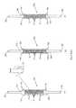 FIG. 12 shows a sling of the invention placed between two layers of biodegradable and/or bioabsorbable mesh;