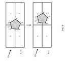 FIG. 5 illustrates another example dynamic closed geometry moving with respect to the map tile grid over time frommap tile23aat a first position and time to maptile23bat a second position and time. In the example shown inFIG. 5, in addition to moving with respect to the tile boundaries, the dynamicclosed geometry21 changes size. While regular pentagons are shown for ease of illustration, any shape may be used by the dynamicclosed geometry21. A closed geometry is any shape that is totally enclosed by lines. A closed geometry may be defined as a shape that has an area that can be calculated. The closed geometry may include edges that are straight lines or curves. The closed geometry may be a regular shape such that each angle between adjacent edges has the same angle, or angles within a predetermined range. The dynamicclosed geometry21 may change shape between frames.