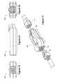FIG. 18 is a perspective view taken from the second end of the in-line dongle adapter module ofFIG. 11, the connectors and cables between which the in-line dongle adapter module is inserted being shown in broken lines for illustrative purposes in accordance with some implementations.
