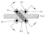Furthermore, as shown inFIG. 3, the first active layer SC1 and the second active layer SC2 are located on different layers that are spaced from each other in a given direction and extend over each other in space such that the first active layer SC1 and the second active layer SC2 intersect each other as viewed in the given direction for reducing the space of the circuit arrangement in advance and easily distinguishing a led out point of the first source S1 and the first drain D1 on the first active layer SC1 and a led out point of the second source S2 and the second drain D2 on the second active layer SC2.