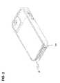 FIG. 2 is a perspective view of the smartphone case and smartphone ofFIG. 1, the case shown inverted from the orientation ofFIG. 1 with the user interface surface of the smartphone facing down.