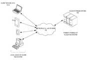 FIG. 1 is block diagram illustrating a cloud storage system coupled with client devices according to embodiments of the invention. In traditional online storage systems the online storage of client data secondary, e.g. a backup, to the storage of the client's data on the client's device. Therefore, each file is stored primarily on the client device and copies of those files are stored in the online storage system. This presents the problems requiring a client device be capable of storing at least as much data as the client is storing in the online storage system or creating a logistical problem of maintaining synchronization between data stored on the client device and in the online storage system. For example, the user perceives the data in online storage system as a copy of data on their device rather than perceiving data in the online storage system as an extension of their device.