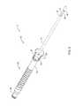 Features of thelocking mechanism50 are further illustrated inFIG. 2. As shown inFIG. 2, theactuator34 may include aknob35 and anextension38 extending proximally from theknob35. Theknob35 may be positioned distal of thehandle32 with theextension38 extending proximally from theknob35 into thebore48 of thehandle32 when assembled with thehandle32. Theextension38 may include one or more features configured to mate with one or more features of thehandle32. For example, theextension38 may include one ormore protrusions40, or a plurality ofprotrusions40, extending radially outward from theextension38. In the illustrated embodiment, theactuator34 includes a pair ofprotrusions40 extending radially outward from theextension38 in opposite directions. Thehandle32 may include one ormore channels42, or a plurality ofchannels42 configured to receive the protrusion(s)40 therein. In the illustrated embodiment, thehandle32 includes a pair of channels42 (only one of which is shown inFIG. 2) positioned on opposite sides of thebore48 through thehandle32. The channel(s)42 may include acircumferential portion44 extending circumferentially around thebore48 of thehandle32 and alongitudinal portion46 extending parallel to the longitudinal axis of thebore48. Thecircumferential portion44 may extend less than 360° in some instances. In the illustrated embodiment, thelongitudinal portion46 may extend distally from thecircumferential portion44 toward the distal end of thehandle32.