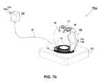 FIG. 7ddepicts schematically a ball-shaped device including a speaker capable of inductive battery charging in an example according to one aspect of the invention;