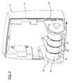 In an embodiment, and without being limitative, thehousing12 is made of moulded plastic such as acrylonitrile butadiene styrene (ABS). However, other materials offering similar characteristics could be used in the construction of thehousing12. Moreover, even though the illustrated embodiment presents the supportingmembers18 and20 as being detachably mounted on thehousing12, one skilled in the art will easily understand that the supportingmembers18 and20 could be integral to thehousing12.