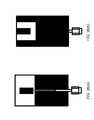 FIGS. 36(a)-36(d) show an example of a semi single-layer MTM antenna structure, illustrating the 3D view, side view, top view of the top layer with the bottom layer overlaid, and the top view of the bottom layer with the top layer overlaid, respectively.