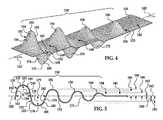 More specifically, as shown inFIGS. 4 and 5,recess structures152 can each include anadir174 and aside portion176. Also, as shown in FIG.4,side portion176 can be three-dimensionally curved, andside portion176 can terminate at thenadir174. Also, as shown inFIG. 5,nadir174 can be recessed inward from thereference boundary142 at adepth178. In some embodiments, thedepth178 of therecess structures152 can range between approximately 0.002 inches and 0.5 inches. Furthermore, as shown inFIG. 5,recess structure152 can have awidth179, which is measured between opposing areas ofside portion176, proximate thereference boundary142. In some embodiments, thewidth179 ofrecess structures152 can range between approximately 0.1 inches and 0.5 inches.