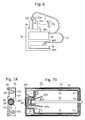 A pair of positioning recesses45a,45bare defined at positions close to opposing lateral ends of thefront surface39aof thecasing39. Thepositioning recess45aand thepositioning recess45bcorrespond to apositioning projection24aand apositioning projection24b, respectively, each of which is projected from theslider23 of thesocket22. Thus, when thecartridge18 is inserted (accommodated) in thesocket22, the positioning recesses45a,45bare positioned with respect to thecorresponding positioning projections24a,24b. In this state, thepositioning projections24a,24bare fitted in the corresponding positioning recesses45a,45bin such a manner as to restrict movement of thecartridge18 in a direction crossing the insert direction, thus positioning thecartridge18.