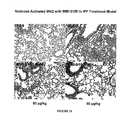 The antibiotic bleomycin was originally isolated fromStreptomyces verticillatus(Umezawa, H. et al.,Cancer20: 891-895, 1967). This antibiotic was subsequently found to be effective against squamous cell carcinomas and skin tumors (Umezawa, H.,Fed Proc,33: 2296-2302, 1974); however, its usefulness as an anti-neoplastic agent was limited by dose-dependent pulmonary toxicity resulting in fibrosis (Muggia, F. et al.,Cancer Treat Rev,10: 221-243, 1983). The delivery of bleomycin via the intratracheal route (generally 1.25-4 U/kg, depending on the source) has the advantage that a single injection of the drug produces lung injury and resultant fibrosis in rodents (Phan, S. et al.,Am Rev Respir Dis121: 501-506, 1980; Snider, G. et al.,Am Rev Respir Dis.117: 289-297, 1978; Thrall, R. et al.,Am J Pathol,95: 117-130, 1979). Intratracheal delivery of the drug to rodents results in direct damage initially to alveolar epithelial cells. This event is followed by the development of neutrophilic and lymphocytic pan-alveolitis within the first week (Janick-Buckner, D. et al.,Toxicol Appl Pharmacol.;100(3):465-73, 1989). Subsequently, alveolar inflammatory cells are cleared, fibroblast proliferation is noted, and extracellular matrix is synthesized (Schrier D. et al.,Am Rev Respir Dis.,127(1):63-6, 1983). The development of fibrosis in this model can be seen biochemically and histologically byday 14 with maximal responses generally noted around days 21-28 (Izbicki G. et al.,Int J Exp Pathol.,83(3):111-9, 2002; Phan, S. et al.,Chest.,83(5 Suppl):44S-45S, 1983). Beyond 28 days, however, the response to bleomycin is more variable. Original reports suggest that bleomycin delivered intratracheally may induce fibrosis that progresses or persists for 60-90 days (Thrall R. et al.,Am J Pathol.,95(1):117-30, 1979; Goldstein R., et al.,Am Rev Respir Dis.,120(1):67-73, 1979; Starcher B. et al.,Am Rev Respir Dis.,117(2):299-305, 1978); however, other reports demonstrate a self-limiting response that begins to resolve after this period (Thrall R. et al.,Am J Pathol.,95(1):117-30, 1979; Phan, S. et al.,Chest,83(5 Suppl): 44S-45S, 1983; Lawson W. et al.,Am J Pathol.2005; 167(5):1267-1277). While the resolving nature of this model does not mimic human disease, this aspect of the model offers an opportunity for studying fibrotic resolution at these later time points.