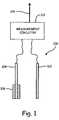 Sensors216 and218 may be any configuration. In one embodiment,sensors216,218 comprise strain gauges having an electrical resistance which changes based upon applied pressure.Measurement circuitry220 measures an electrical characteristic ofsensor216,218 related to the applied pressure. As discussed above, this can be correlated to the amount of corrosion of thecorrosion sensing membrane208.Measurement circuitry220 provides anelectrical output222 related to the sensed pressure, measured corrosion.