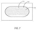 FIG. 7 is a top perspective view from an exterior of one embodiment of a domed-shapedenclosure174 that encapsulates the encapsulatedMEMS switch172 shown inFIG. 6D. Note the smooth reflowed shape provided by a profile176 (represented by dashed lines) of the domed-shapedenclosure174. Thisprofile176 is enabled by the second polymer basedsacrificial layer156 and clearly demonstrates that the encapsulatedMEMS switch172 has an increased spatial efficiency compared to other encapsulated MEMS switches. It may also has increased structural robustness and integrity compared with MEMS switches encapsulated with non-reflowed non-domed-shaped enclosures. These encapsulated MEMS switches have been demonstrated to survive and remain hermetic thru subsequent wafer processing as well as plastic over molding.