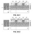 InFIG. 3A-1, a structure is provided having ananowire stack301 disposed above asubstrate304, asacrificial gate structure322 defining achannel region308, externalgate sidewall spacers310 on the sidewalls ofsacrificial gate structure322, and source/drain regions312 on opposite sides of thechannel region308. In an embodiment, source/drain regions312 are covered byhardmask330 andinterlayer dielectric332.Hardmask330 may be any material suitable for protecting underlying nanowires from etching and doping processes.Interlayer dielectric332 may be any known low-k dielectric material, such as silicon dioxide, silicon oxy-nitride, or silicon nitride. As illustrated inFIG. 3A-2, an optional reflective or opaque mask may be formed on theexternal spacers310 andinterlayer dielectric332 to prevent electromagnetic radiation or particle beam from entering theexternal spacers310.