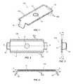 The first connector10 includes one or morefirst bonding projections40a. In the embodiment ofFIGS. 1-4, thefirst bonding projections40aof thefirst connector10ainclude a plurality ofteeth40athat extend from side edges of thebody14. Stated another way, thebody14 includes side edges extending between the first end and the second end, and theteeth40aprotrude outwardly from the side edges in a direction perpendicular to the axis A. In the illustrated embodiment, each of theteeth40aprotrudes at anacute angle44 with respect to the plane B (FIG. 3) and relative to the axis A. Theangle44 is smaller than theangle36 in the illustrated embodiment. In some embodiments, theangle44 is between approximately 5 degrees and approximately 20 degrees. In some embodiments, theangle44 is approximately 13 degrees. In some embodiments, there are twentyteeth40athat extend from each side of thebody14. In other embodiments there may be fewer or more teeth on each side.