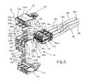 As previously discussed, release levers22 and24 are rotatably mounted to sidewalls20aand20band in turn, release levers22 and24 are aligned withplug release actuators26 and28, respectively. Movement of release levers22 and24 toward each other causes plugrelease actuators26 and28 to engage plug latches64a-64fof plugs14a-14fand move latches64a-64fto a release or unlock position to permit simultaneous disengagement of plugs64a-64ffrom their electrical connections.