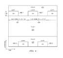 FIG. 4 is frequency vs. timeplot illustrating PUCCH404,405 andPUSCH402, with Scheduling Request Indicators transmitted in the PUCCH. In this patent application, without loss of generality, an SRI is sent on the PUCCH. As mentioned earlier, SRI is continuously allocated on one RB of the physical uplink control channel (PUCCH) such that thirty-six UEs can be multiplexed in one RB subframe, as indicated generally at407. The next sequential subframe is indicated at408 and can likewise support up to thirty-six UE. Within a sub-frame, the SRI hops at both edges of the system bandwidth on a slot basis. Each slot represents one-half of a subframe. For example, an SRI in slot406-1 ofsubframe407 is in thehigher frequency edge404 and the SRI is repeated in slot406-2 ofsubframe407 which is in thelower frequency edge405 of the PUCCH. Similarly, slots408-1,408-2 carry SRI for the next set of thirty-six UE insubframe409. In general, the first and second slot SRI sequences are the same, but they may be different in some embodiments.