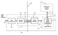The videodisplay software application240 processes the received video and prepares anoutput display signal250, optionally within the virtual (Linux) platform running onserver230. The video display software application running onserver230 provides theoutput display signal250 on alink260 which connected to adisplay device270 for viewing by the user. Thedisplay device270 may be a conventional terminal such as a KVM (keyboard, video display, mouse) console used by a user that is attached to the higher domain server, or a video projector or any other type of video display coupled to the higher domain server. When multiple virtual environments are optionally provided withinserver230, each is associated with a separate display device coupled toserver230 via an associated link.